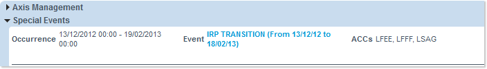 This Portlet allows you to view all the details for the queried ACC. An autosuggest mechanism will propose you, in a range gradually narrowing as you type in, all matching ACCs identified in the ACC plan whose display period include the current portal UTC date: