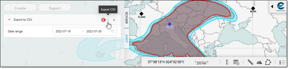 ... opens the Export component, where you can specify the desired Date range (or keep the proposed default values) then click on the Export CSV icon to proceed: