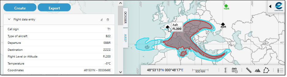 1. Fill in all mandatory fields (highlighted in red) in the Flight data entry section: