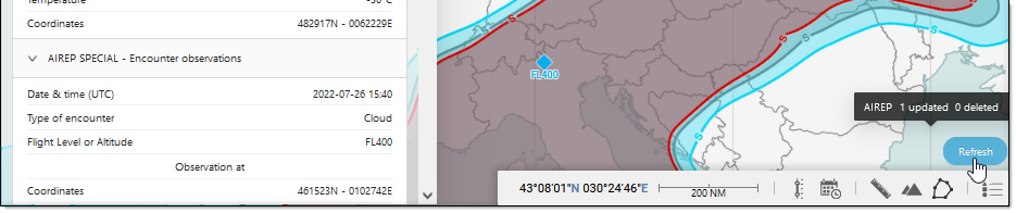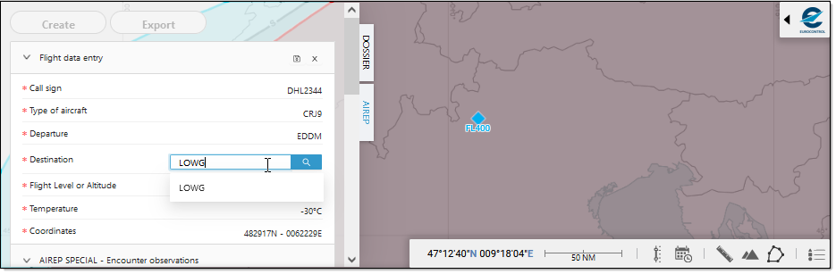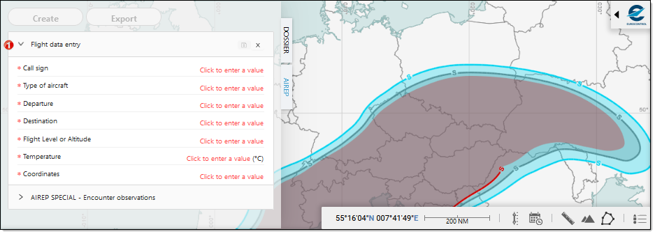 2. Fill in all mandatory fields (highlighted in red) in the AIREP SPECIAL - Encounter observations section: