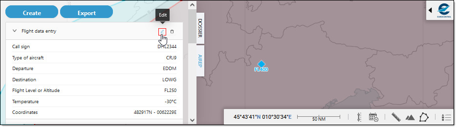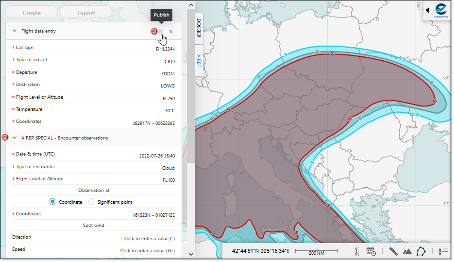 3. Click on the Publish button to save and plot the newly created AIREP: