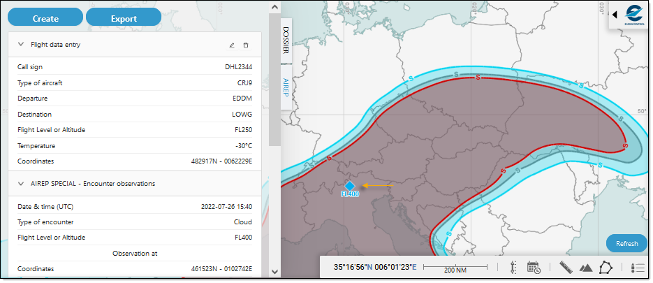 - Coordinates: Coordinates (Position report) of the aircraft presented in terms of LATITUDE and LONGITUDE at the moment of the encounter observation.