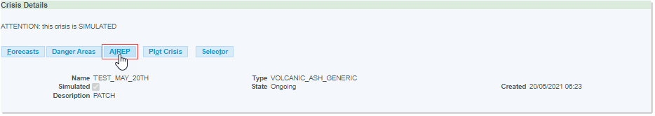 The AIREP button is located in the Crisis Details section: