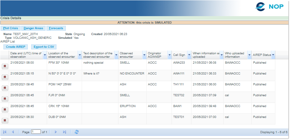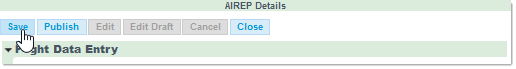From this point, you may either re-save the AIREP with the Save button and by so doing, update the Draft document - or click on the Publish button to have the AIREP published on the NOP.