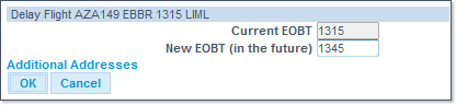 The Delay button allows you define a New EOBT, via a pop-up dialog:
