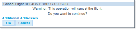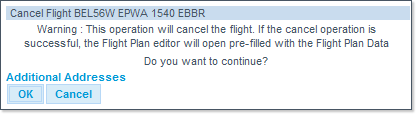 Select in the List the individual Flight you want to address, then click on the Cancel and Refile button - a warning message prompts you to click on the OK button to continue:
