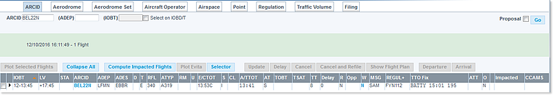 IOBT, LV, STA, ARCID, ADEP, ADES, D, RM, T, RFL, ATYP, U, E/CTOT, S, CL, A/TTOT, AT, Delay, R, Opp, W, MSG, REGUL+, TTO Fix, ATT, O, Impacted, CCAMS.