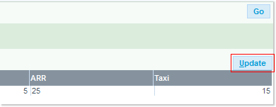 - If either or both the Dep and the Departure Taxi Time fields are set to a value other than that defined in the Environment database at the start time of the period, they are displayed in Tactical Update Colour.