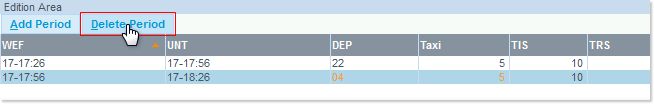 The Delete Period button is only enabled if the WEF of the currently selected period, if present, is later than the current UTC time; or if the selected period has been added in the current window session (i.e. not already submitted into the system)