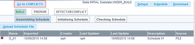 When all the required Schedule elements have been successfully uploaded (please refer to the Upload Schedule File for guidance in this action), click on the Go to CONFLICTS button:
