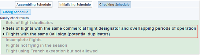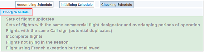 Incomplete flights and Flights using French exception require correction before continuing with the workflow. This can be done by deleting the flights directly from the checking area or from the schedule option in the view. If this is the case then the schedule must be re-initialised.