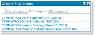 - The top part of the portlet displays automatically the reports which correspond to the target date chosen in the Portal. The links to the reports are organised via 3 tabs:
