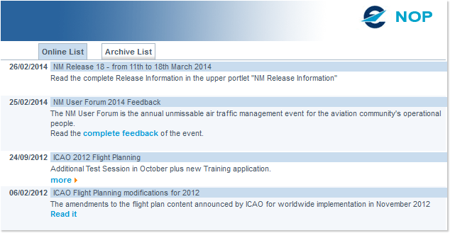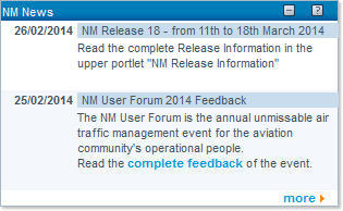 The NM News Portlet displays the last 3 of a selection of the most relevant (for the actors involved in Network Operations) news items published on the Network Manager website.