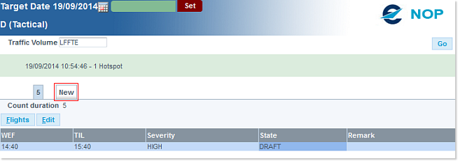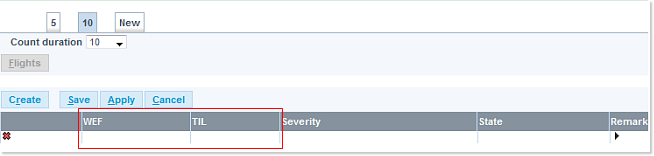 A new blank entry is created in the Hotspot editor, yet missing two important WEF and TIL values: