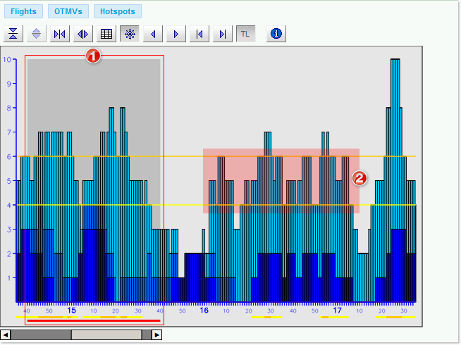 2 The area where the Counts exceed the Peak (and Sustained) values as declared in the associated OTMV - suggesting us to use the 16:00 for the WEF value and 17:10 for the TIL value.