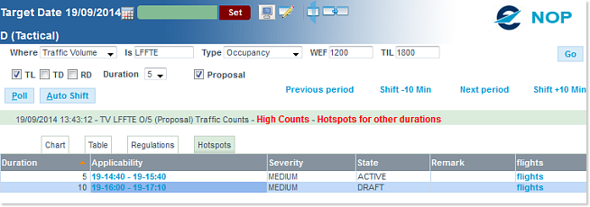 - DRAFT: the Hotspot is created, but is not visible on the Traffic Counts window. An orange line below the counts shows the hotspot period