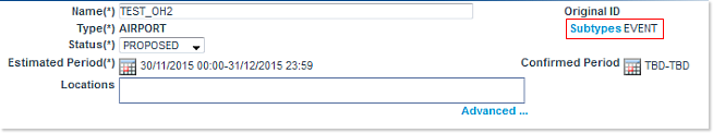 We have created this test example for you, and gave the name TEST_OH2 to a new AIRPORT event whose estimated period ranges from 30/11/2015 to 31/12/2015: