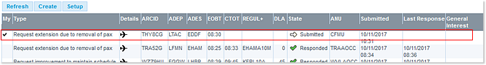 Note: A request submitted by mistake can be recalled, by means of a Recall button available to all flights whose Status is still 'Submitted'. Such a recalled flight cannot be seen anymore by other ANUs - but is still visible (however not editable) by Network Operations.