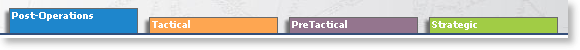 On the other hand, the Workflow option reflects the logical sequence in an operational perspective: planning ahead (Strategic), refining the plan (PreTactical), operating (Tactical) and finally assessing results (Post-Operations).