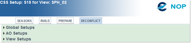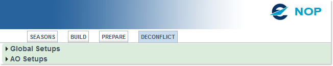 This opens the DECONFLICT tab, featuring the Global Setups and AO Setups sections.