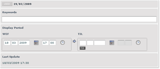 • USED, Keywords, Display Period and Last update for the second and last one.