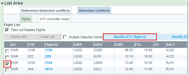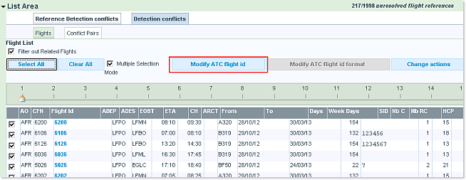 - Modify ATC Flight ID - accessible in the conflict list once one or several flights have been selected.