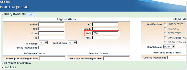 The example below shows how to retrieve all conflicts concerning flights departing from LFPO: