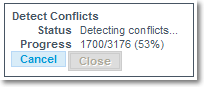 The first step here will be to detect possible conflicts, by clicking on the Detect button. A status popup will appear, allowing you to monitor (or cancel) the process: