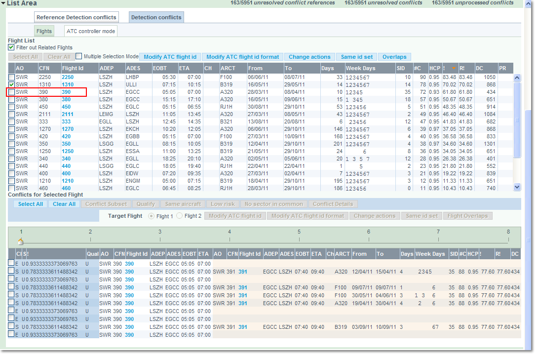 Lastly, click on a given flight to return a list of all conflicts matching the selected Flight ID.