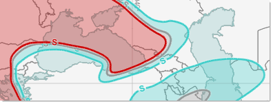 Forecast is displayed as stacked layers, each flight level range getting a distinct color as defined by the affected areas settings.