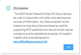 A Disclaimer pops up when you first open an EVITA Map window in a given browser session - Click on the OK button to resume works: