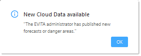 The New Cloud Data available notice indicates that the Administrator has updated EVITA Data: