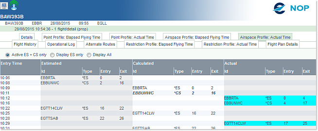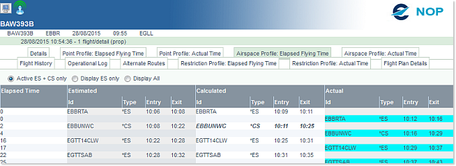 - Entry: Either the Calculated Time of Entry (in hh:mm) or the Elapsed Time at Entry (in minutes) of the flight in the airspace.