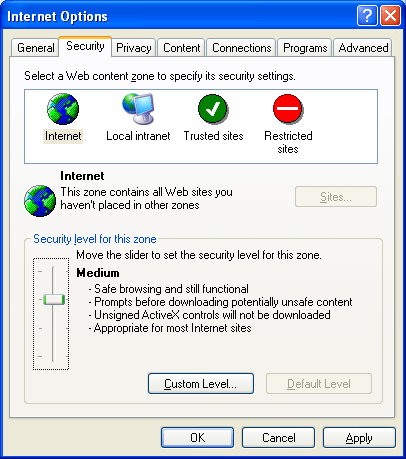 - Click on Internet at the top of the panel, then move the slider near the bottom of the panel to "Medium" to allow Javascripts to run.