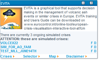 The European crisis Visualisation Interactive Tool for ATFCM (EVITA) is a visualisation tool that supports decision making in times of crises. EVITA is available on the Network Operations Portal (NOP) to all NOP registered users with a token.