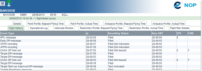 - EFD: 'E' is displayed if an ETFMS Distribution Message (EFD) has been sent.