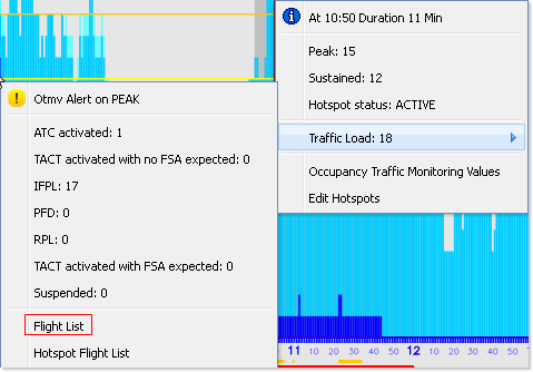 ► Via the Flights tab from the Traffic Counts window - The Flight list of the Hotspot: