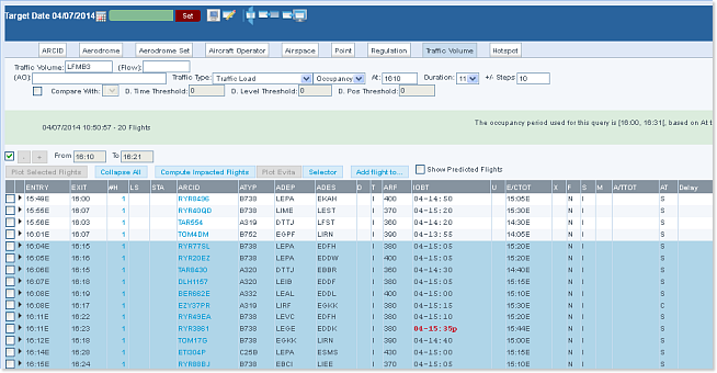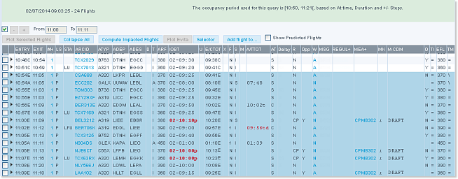 - LS: the occupancy load state in which the flight is counted. If the flight is counted in the Peak, the letter P is displayed in the column- and if the flight is counted in the Sustained, the letter S appears instead.