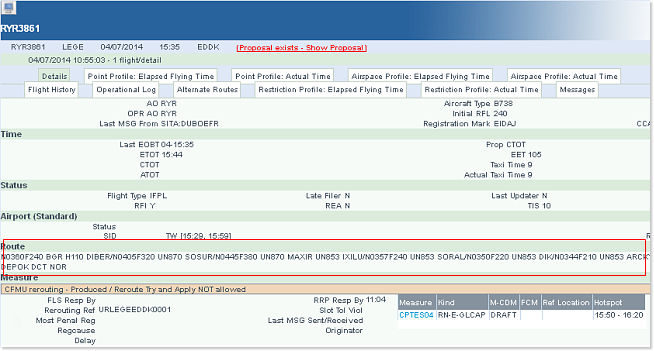 Click on the callsign link (in the ARCID column) highlighted above to open the Flight details: