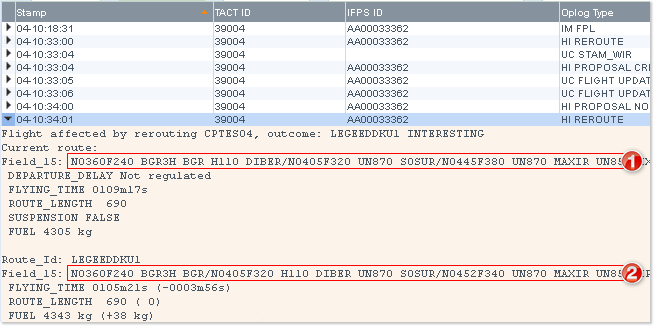 A Proposal Route may also be presented from the Operational Log tab - locate the arrow in front of the HI REROUTE line..