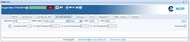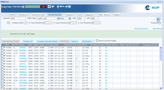 This is how the Flight List window appears on the NOP Desktop - note that the Aircraft Operator tab has been selected: