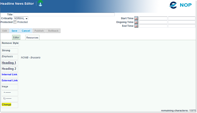 From the Headline News Portlet on the NOP Main page, use the Create link( ) to open a blank template: