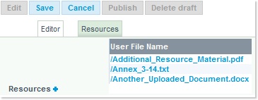 Repeat the above described steps to add more material to the Resources section: