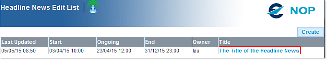 This opens the Headline News Edit List window - and see that the item indeed appears in the provided table: