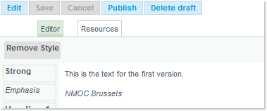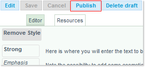 The saved item is now ready to be published. To do so, click on the now activated Publish button: