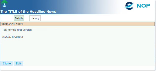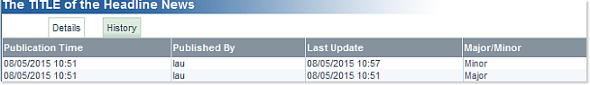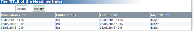 In cases where you wish to make some minor changes to an item, go back to the Network Headline News Portlet on the main page and simply click on a Network Headline News Title to open its corresponding History window: