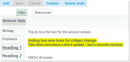 Save the changes, and go again through the Publish process once more, leaving the Minor radio button off (thus creating a Major update):