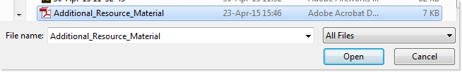 Then use the Browse button and then navigate within your file system to locate the desired resources to be uploaded, then click on the Open button: