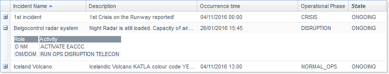 minimize button, to respectively display or hide the list of Roles having performed an Activity on the incident, along with the corresponding Activity performed: