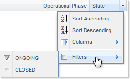 - State: select from the proposed list: ONGOING and/or CLOSED.